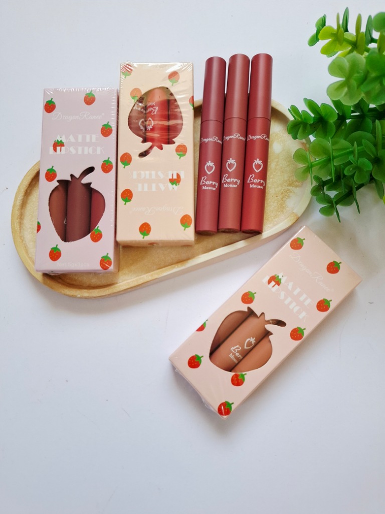 خانه آرایشی آرایش لب رژ لب توت فرنگی 3 تایی